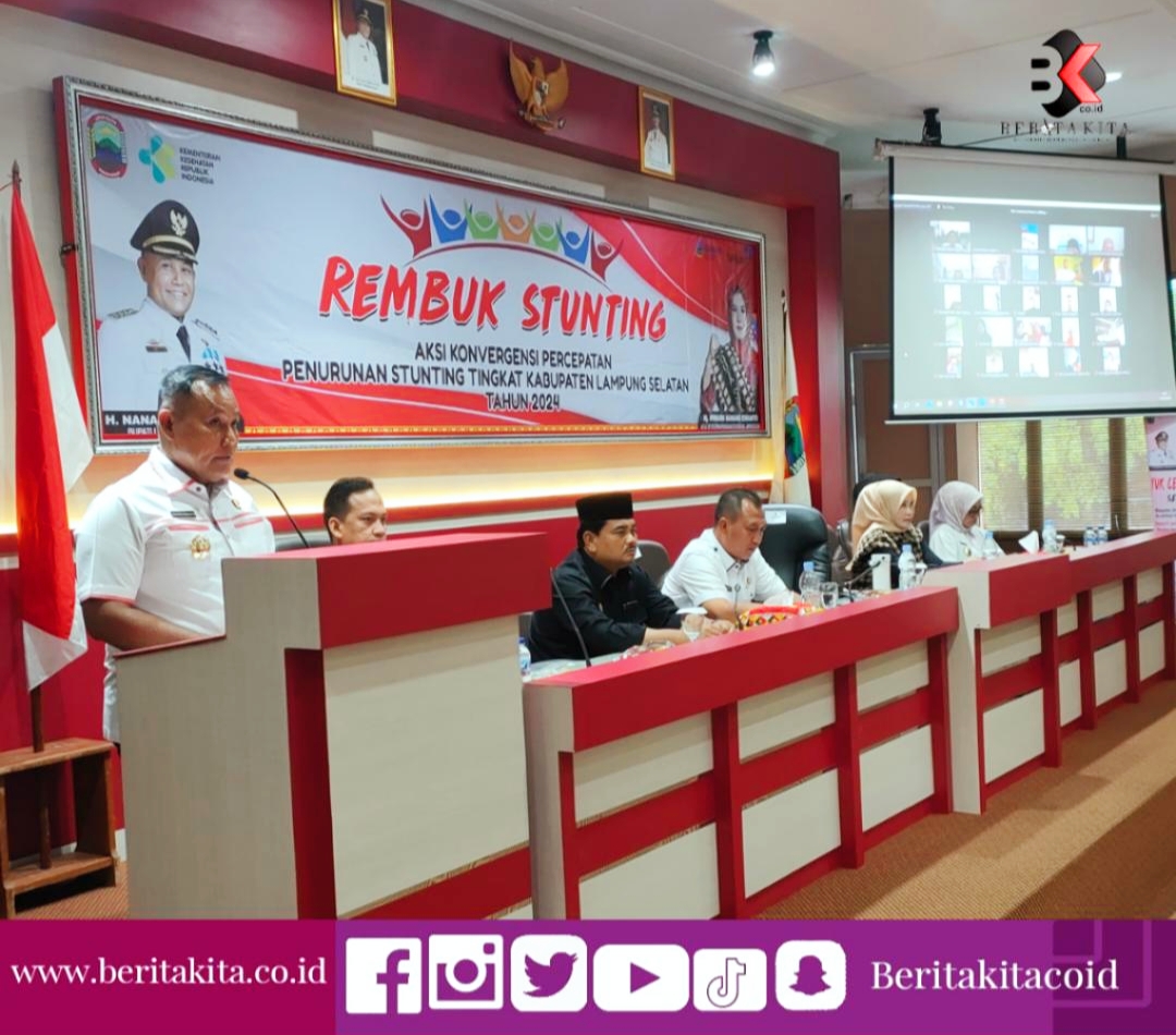 BERITAKITA.CO.ID, Lampung Selatan – Pemerintah Kabupaten Lampung Selatan menggelar rembuk stunting tahun 2024, di Aula Rajabasa, Kamis 22 Febuari 2024.