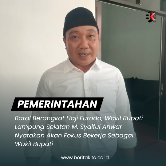 BERITAKITA.CO.ID, Lampung Selatan – Wakil Bupati Kabupaten Lampung Selatan M.Syaiful Anwar batal melaksanakan ibadah haji melalui jalur Haji Furoda. Alasanya, Visa Mujamalah untuk Haji Furoda, tidak keluar.