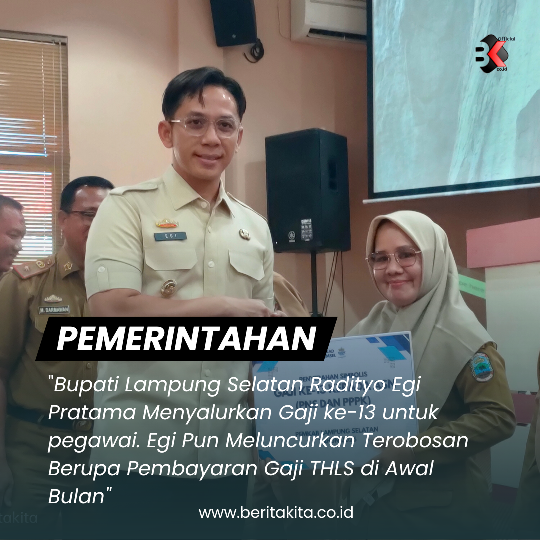 BERITAKITA.CO.ID, Lampung Selatan – Bupati Lampung Selatan Radityo Egi Pratama menyalurkan gaji ke-13 untuk pejabat negara, DPRD dan seluruh ASN di lingkungan pemkab setempat, Selasa 3 Juni 2025.