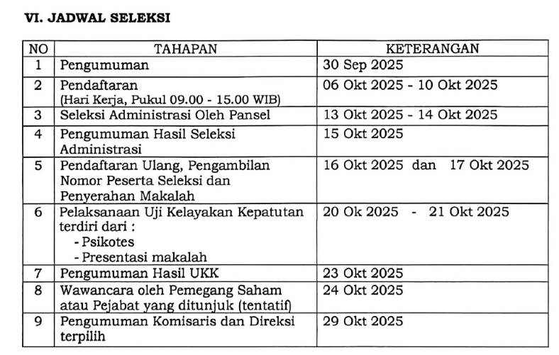 Sekretaris Daerah Kabupaten Lampung Selatan Supriyanto membenarkan itu. Ia menyebut, seleksi calon komisaris dan direksi BUMD Perseroda LSM itu mulai dibuka terhitung tanggal 30 September 2025.