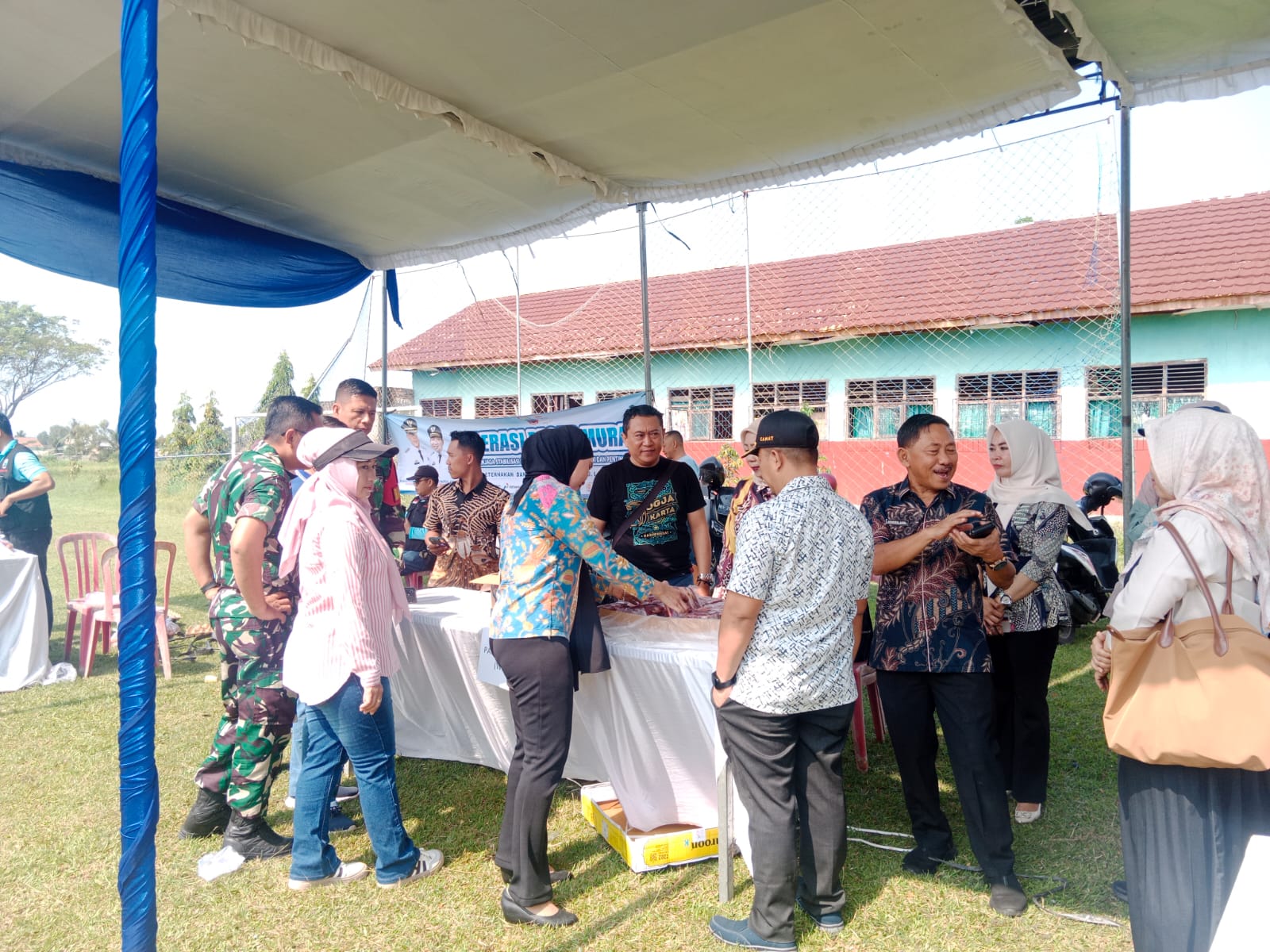 Nah, pasar murah ini merupakan salah satu bentuk nyata dari kehadiran pemerintah beserta swasta dan pelaku usaha di tengah masyarakat dalam rangka menjaga ketahanan pangan di kabupaten ini.
