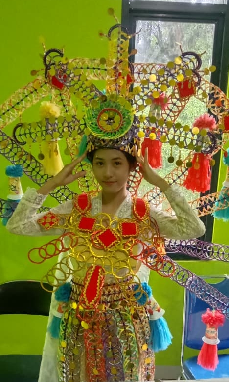 Betapa tidak, barang-barang bekas yang dianggap kebanyakan orang hanya sebagai limbah dan tidak berguna ‘disulap’ menjadi kostum mewah dan unik.