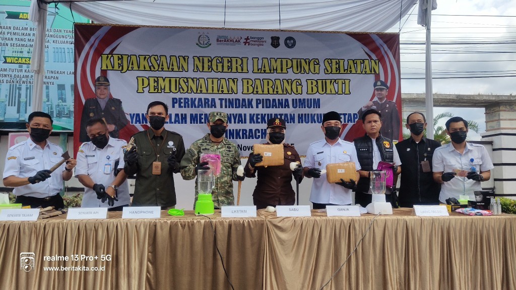 BERITAKITA.CO.ID, Lampung Selatan – Kejaksaan Negeri Lampung Selatan memusnahkan barang bukti tindak pidana umum, yang telah berkekuatan hukum tetap priode Juni-Oktober 2025 bernilai Rp sekitar 32 Miliar.