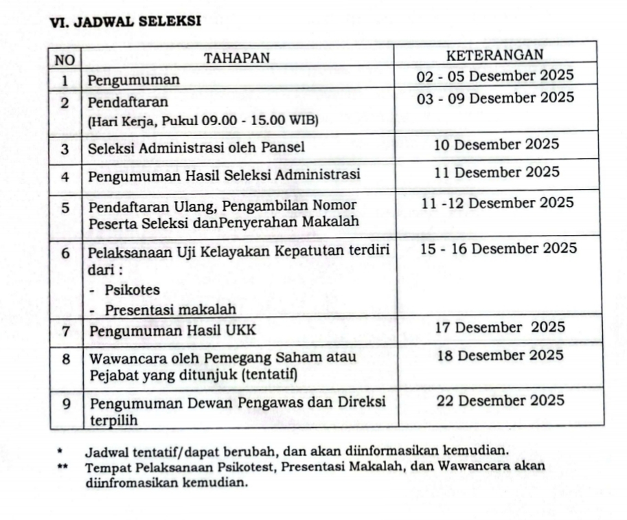 Pengumuman seleksi tersebut sudah dibuka sejak kemarin tanggal 2 hingga 5 Desember 2025. Sedangkan pendaftaran calon mulai dibuka pada hari ini tanggal 3 hingga 9 Desember 2025.